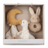 Puiki kūdikio dovana patiems mažiausiems. „Giftset Newborn Naturals“ – tai meilus minkštų pirmųjų žaisliukų, skirtų mažoms rankytėms ir dideliems atradimams, rinkinys. Subtilių, natūralių atspalvių ir iš geriausių medžiagų pagamintas rinkinys suteikia komforto, žaismingumo ir saugumo. Graži dovana, kurią galima dovanoti ir gauti, šiltam sutikimui pasaulyje.