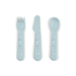 Šis mėlynas „Foodie“ stalo įrankių rinkinys turi minkštus, apvalius kraštus, todėl yra saugus mažiems vaikams, kurie mokosi valgyti patys.
