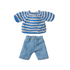 Jei jums reikia naujo drabužių rinkinio savo pelei, šis rinkinys yra tikrai klasikinis pasirinkimas. Minkštas megztas megztinis su mėlynomis juostelėmis pridedamas kartu su džinsų pora.