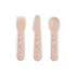 Šis rausvas „Foodie“ stalo įrankių rinkinys turi minkštus, apvalius kraštus, todėl yra saugus mažiems vaikams, kurie mokosi valgyti patys.