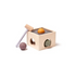 Padėkite medinį rutuliuką ant dėžės viršaus ir trenkite į jį plaktuku, kad rutuliukas iškristų. Banke, banke, banke, saugokis! Niekada nežinai, iš kurios pusės kamuoliukas išlįs. Komplekte yra trys skirtingų spalvų dažyti mediniai rutuliukai ir plaktukas.