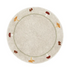The Chanterelle round rug is perfect for any room, as its natural colour and shape make it a great addition to any interior. It is decorated with charming details, including a border depicting various types of mushrooms with different textures. The rug combines fabric patches with polka dot patterns, an inner circle with a slightly longer olive pile and design elements in honey, burgundy, toffee and ivory.