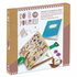This kit includes a wooden press that you need to assemble yourself from the specified parts (2 illustrated wooden boards, a velcro sticker, 3 cardboard sheets, 8 stickers, 3 sheets of paper and 2 rubber bands), a 48-page herbarium notebook and instructions.