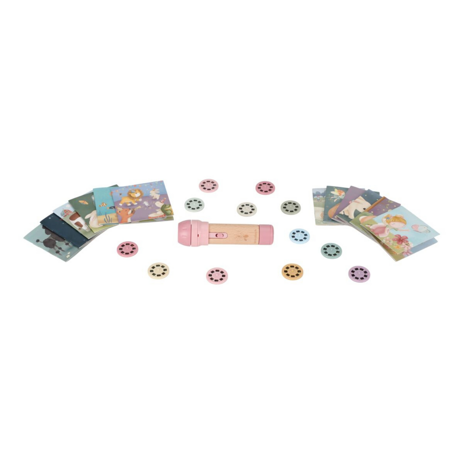 Relive the magic with the stories in this projector flashlight for kids! This special flashlight contains 12 discs, each with its own story, which comes to life through amazing, unique illustrations projected onto the wall. Each story is accompanied by a corresponding illustrated booklet.