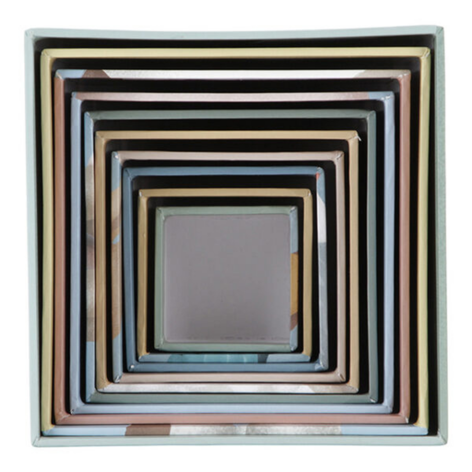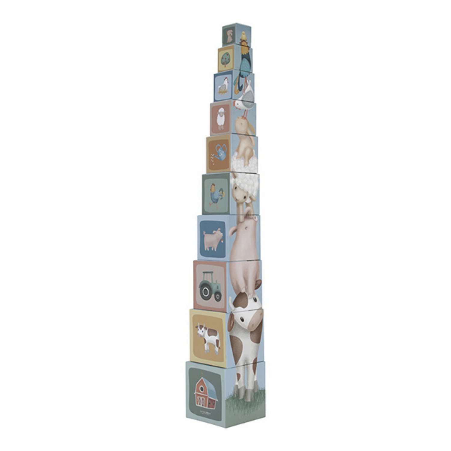All-time favorite Little Dutch rigid cardboard, building blocks in a box, new Little Farm collections. The set consists of 10 blocks of various sizes and colors. Little ones will love to build different shapes and the tallest towers according to size, and then put them back neatly when they are done playing.
