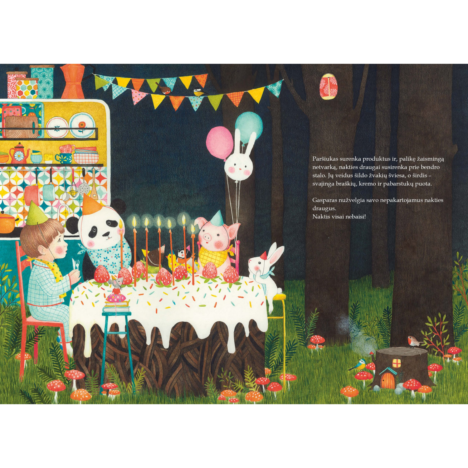 Gasparui, kaip ir daugeliui vaikų, naktį būna nejauku. Jis negali užmigti ir svajoja apie mažytį nakties draugą, kuris padėtų jam nurimti ir jaukiai panirti į sapnus. Paslaptingas draugas pakviečia berniuką į nepamirštamą kelionę. Joje Gasparas susipažįsta su kitais mielais namo gyventojais, jų baimėmis ir svajonėmis. Kartu jie įveikia visas kliūtis, ir vaikas netrukus įsitikina, kad naktis visai nebaisi – ji smagi, pilna magijos ir skani kaip šokoladinis tortas su pabarstukais.