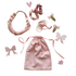 Išpildykite mažųjų šokėjų svajones su mūsų baleto dovanų rinkiniu. Gražiai supakuotas minkšto audinio maišelyje su mažais baleto bateliais, kiekvienas rinkinys sudaro satino juostelė, dvi tiulio kaspinėlės, keturios satino gumytės ir 12 mini gumytės. Puiki dovana pradedančioms balerinoms!