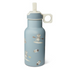 Stainless steel water bottle with activity cap. The lid has a handle that can be easily attached to a bag or stroller. Keeps water cold for up to 24 hours.