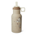 Stainless steel water bottle with activity cap. The lid has a handle that can be easily attached to a bag or stroller. Keeps water cold for up to 24 hours.